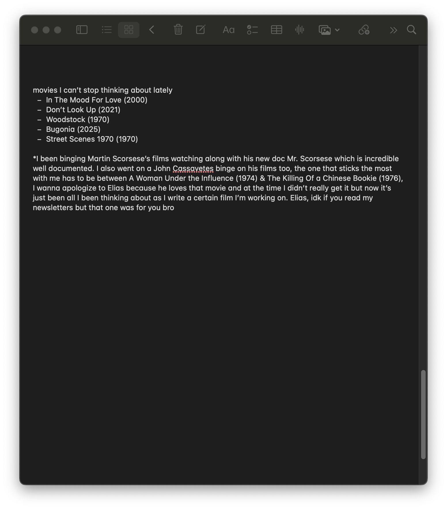 I’ve made a list of movies I’ve enjoyed.