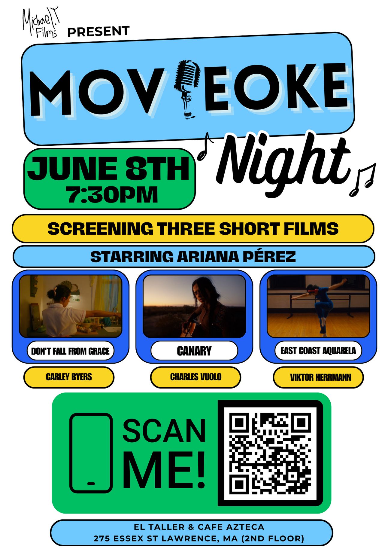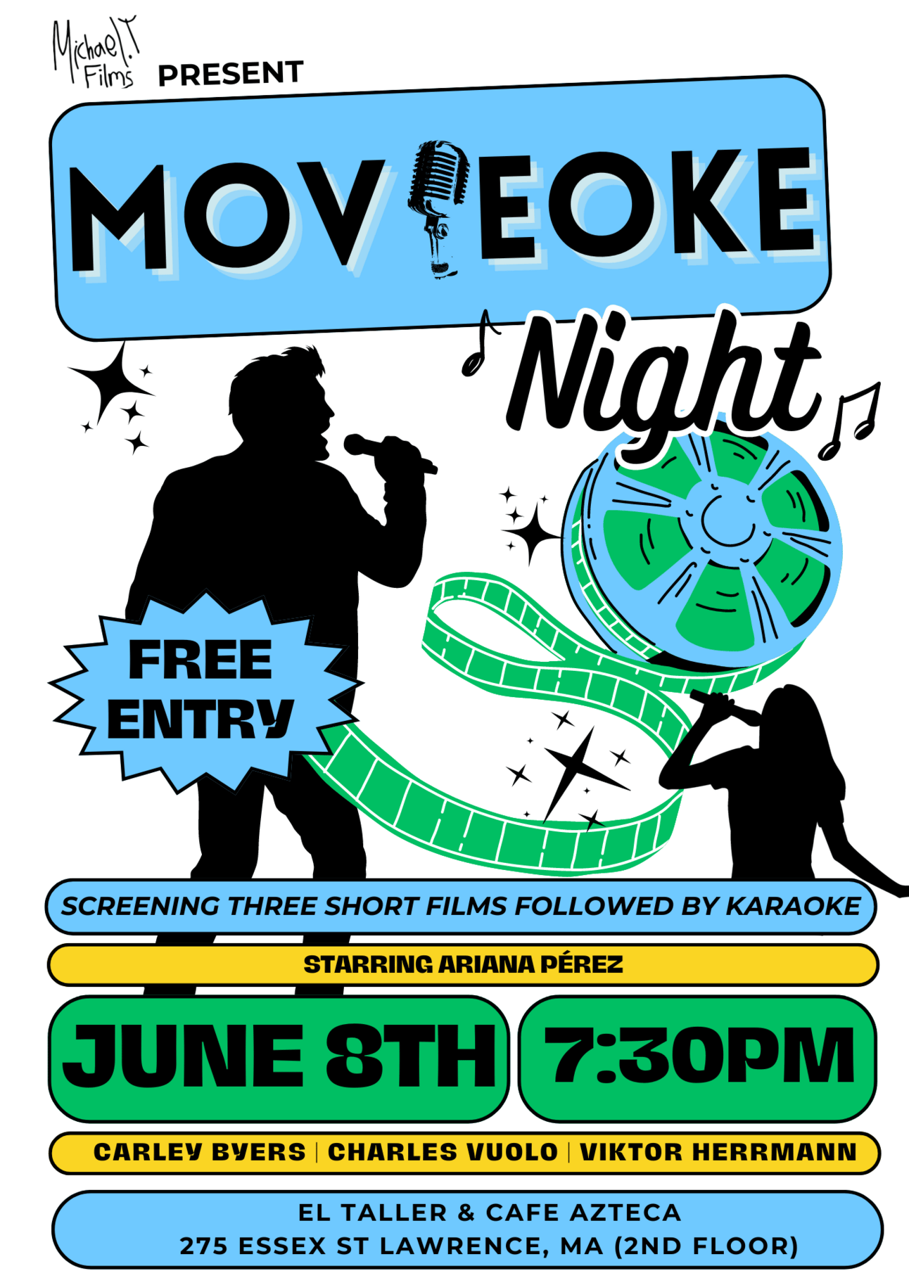 Join us for a unique Movieoke experience at El Taller & Cafe Azteca on June 8th! The event will take place at 275 Essex St Lawrence, MA, starting at 6 PM. Make sure to RSVP now before tickets disappear!